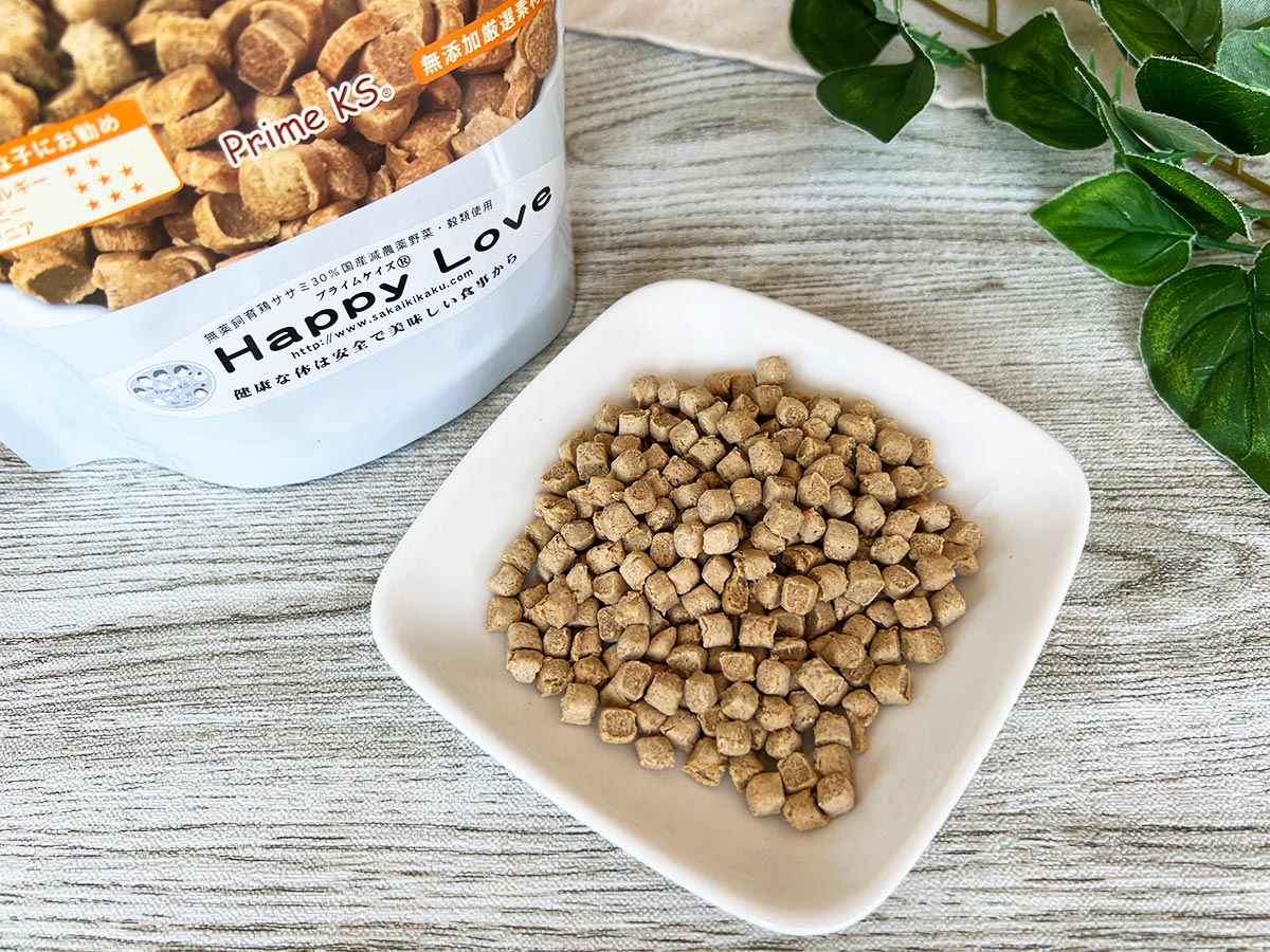 ドライフードに慣れてないのかなと思い、周りの人にお勧めを聞いてみてこちらのHappyLoveを購入した所、最初は嫌々ながらも完食してくれました!
